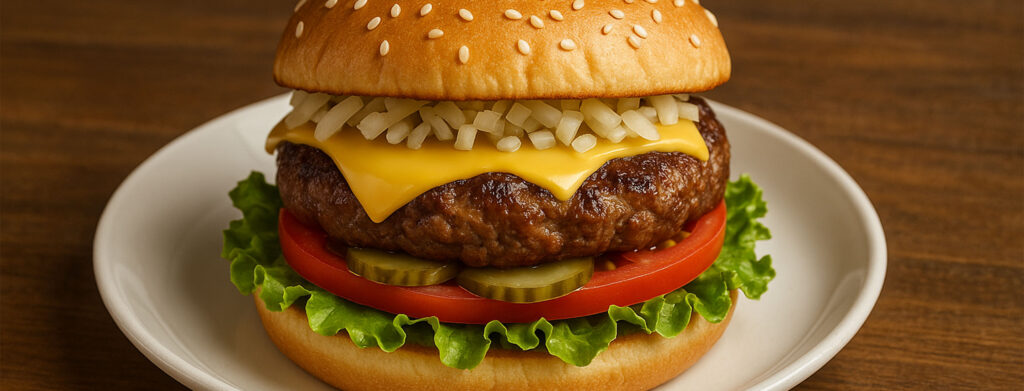 当店自家製のバンズとハンバーグを使った食べ応えバツグンのハンバーガーです